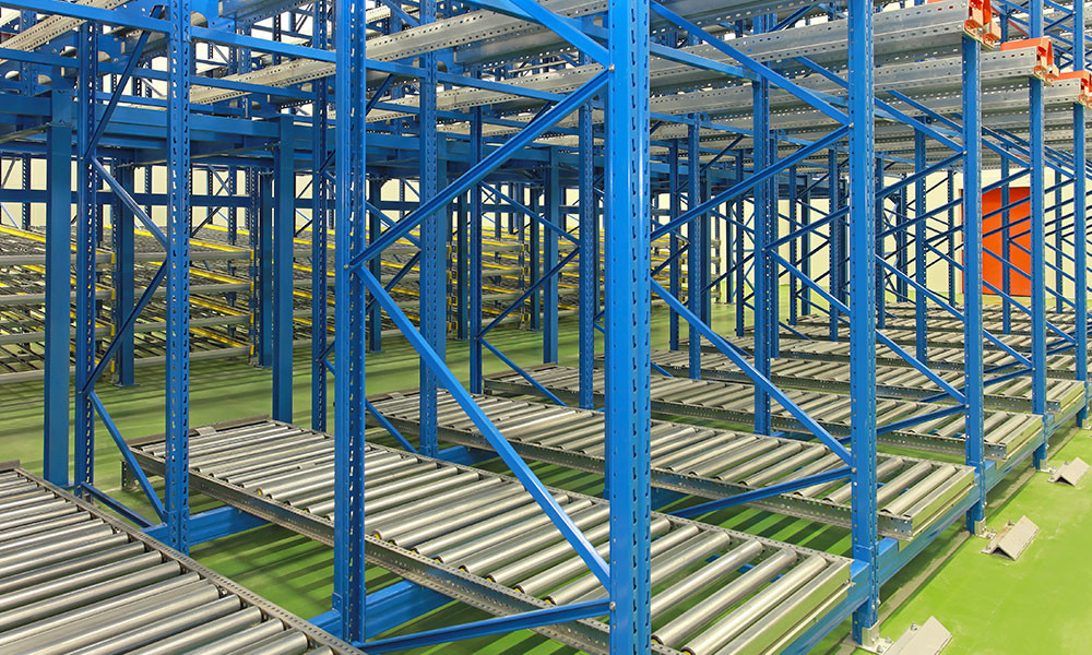 Il s'agit d'un système d'étagères composé de colonnes, de poutres, de rouleaux et d'amortisseurs.Il est principalement constitué d'étagères lourdes ou d'étagères de taille moyenne (sélectionnées en fonction des exigences de charge). La ligne de roulement est installée aux deux extrémités avec une certaine pente, qui peut réaliser le premier dans, le premier hors des marchandises par le poids de la cargaison.