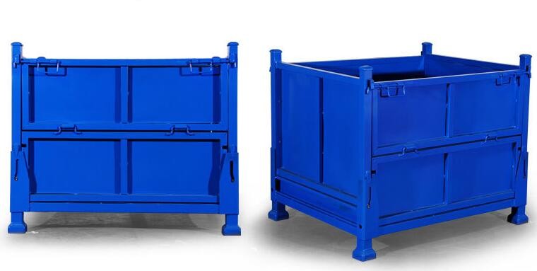 Boîte à palettes en acier pliable métallique bleu empilable capacité de chargement de 1000 kg
