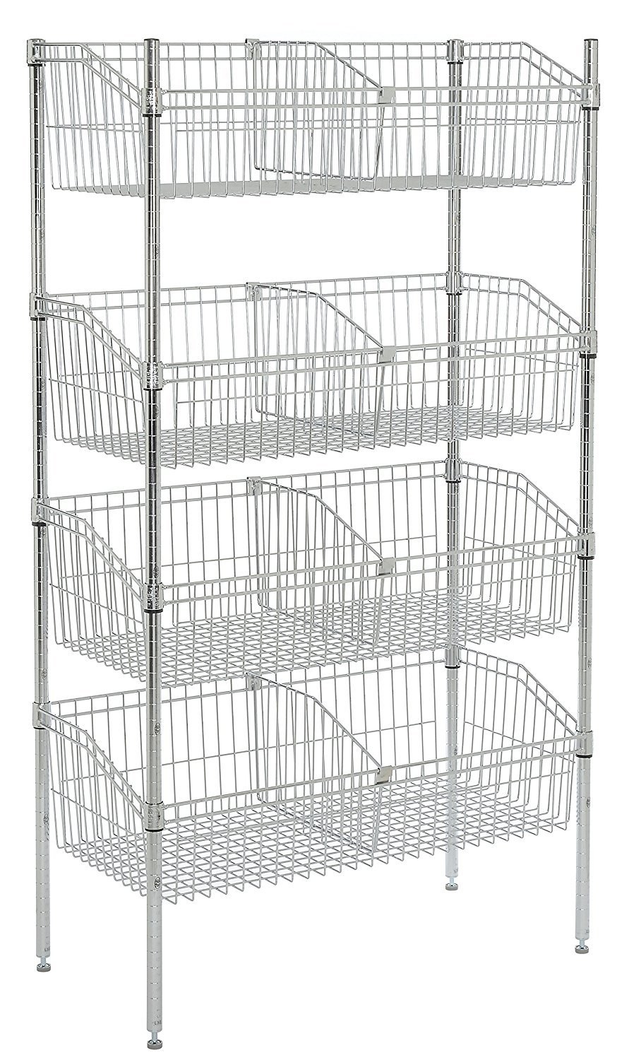 | Titre 1) | 8 - Corbeille Entreposage au détail Finition argentée chrome Fil de grille Corbeilles |