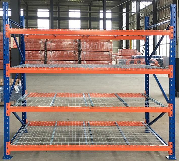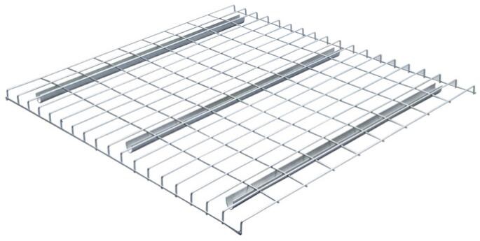 Le platelage en treillis métallique est couramment utilisé comme mesure de sécurité sur les rayonnages à palettes sélectifs pour empêcher les palettes ou les produits qui y sont stockés de tomber à travers la structure du rayonnage. Il est disponible en différentes épaisseurs et dimensions de mailles. La plupart des platelages en treillis métallique ont un canal en forme de U ou un canal évasé pour supporter la charge. Avec ce platelage en cascade, le treillis métallique s'étend sur le dessus et sur l'avant de la poutre pour fournir plus de support et est plus souhaitable sur le marché.