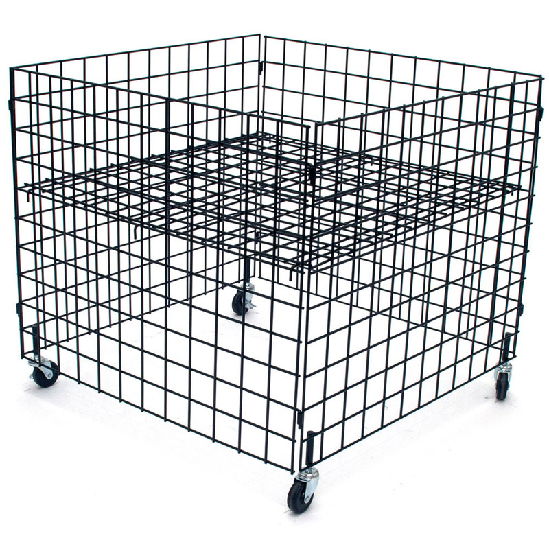 Supermarché Vente au détail Cage métallique à fil d'affichage poubelle avec roue