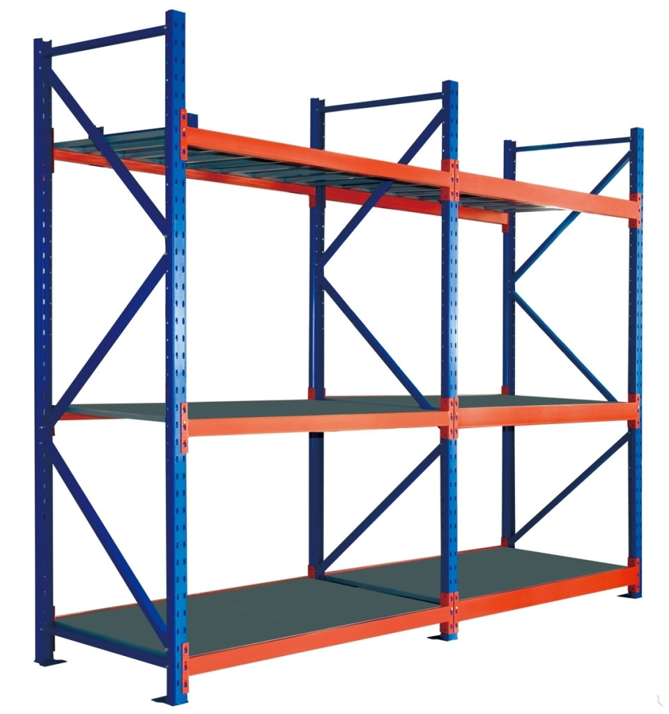 Les étagères à large portée sont principalement constituées de poutres à pas, de cadres, de panneaux en acier et de plaques de pied..Principalement pour les marchandises de grande capacité de charge avec longue poutre transversale.
