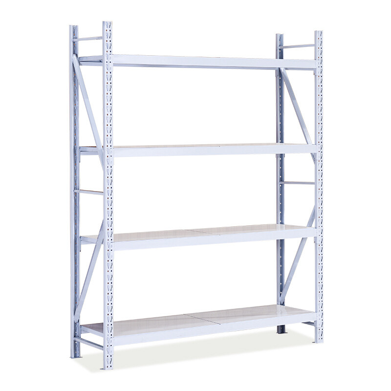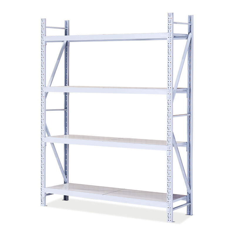 Les étagères à large portée sont principalement constituées de poutres à pas, de cadres, de panneaux en acier et de plaques de pied..Principalement pour les marchandises de grande capacité de charge avec longue poutre transversale.