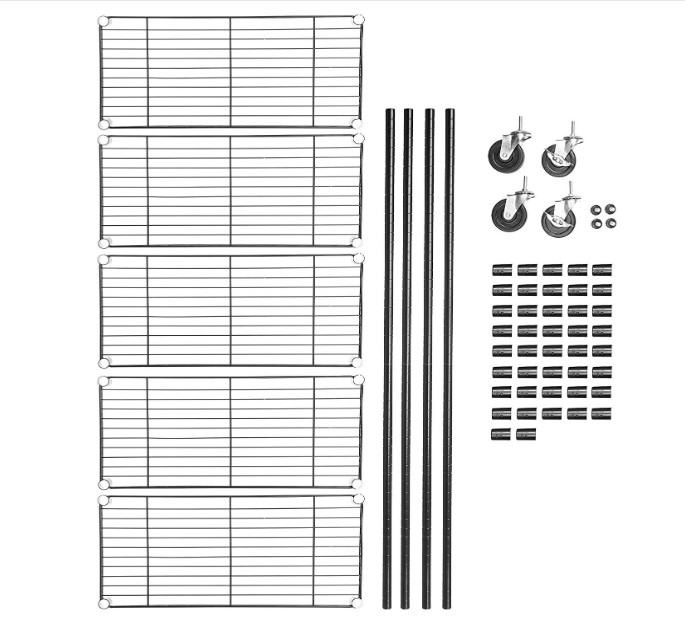 Unité de stockage de 5 étagères sur 4' roulettes de roue organisateur métallique rack de fil
