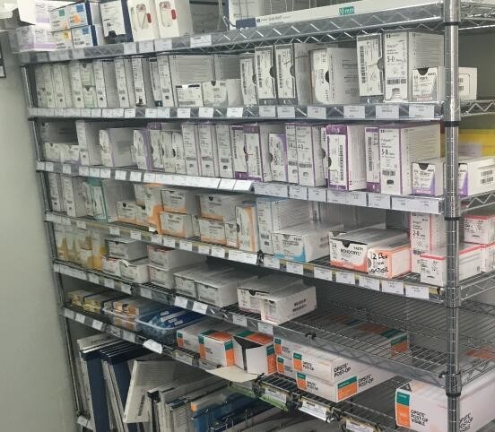 Cette étagère en fil de fer peut contenir une grande quantité de médicaments.